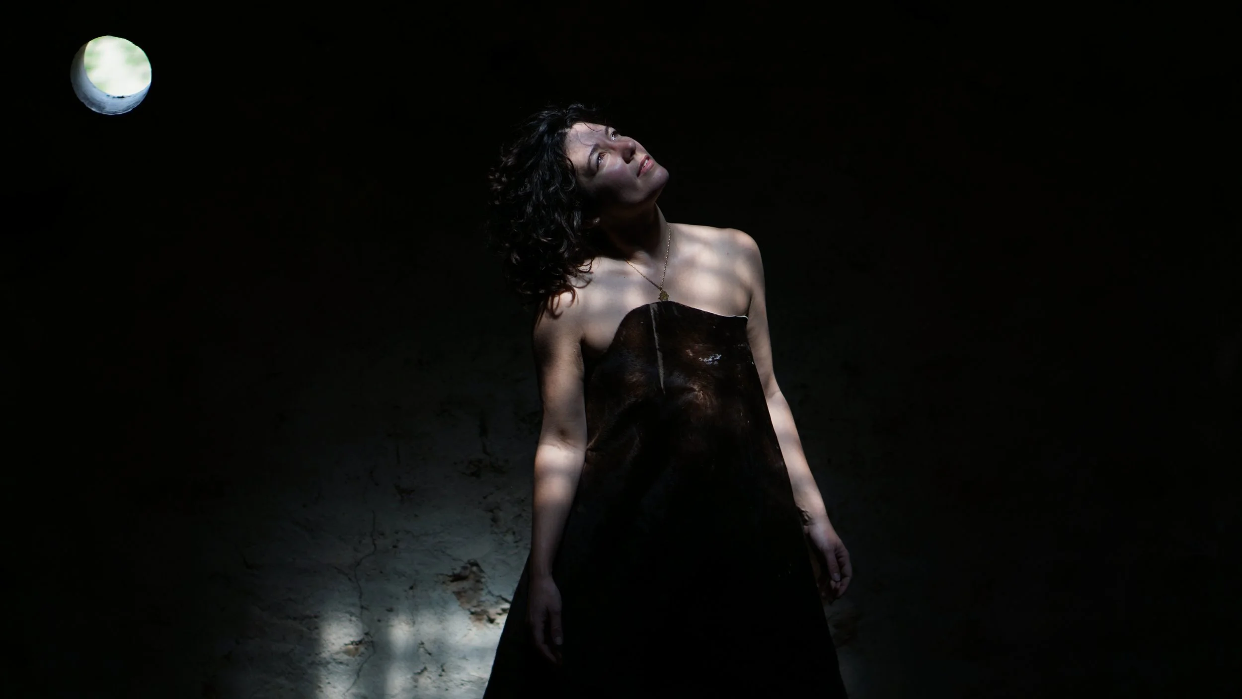 Photograph of Eva wearing a cow skin shot by Lito (unedited)